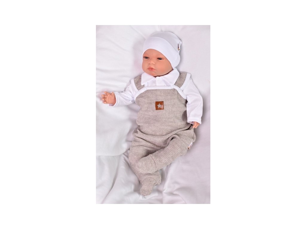 2-dílná soupravička Star, body dl. rukáv + pletené dupačky, béžové