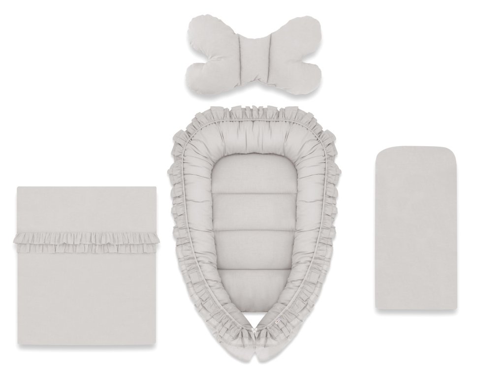Hnízdečko má široké použití, funguje jako přenosná postýlka. Kokon zajistí dítěti pocit blízkosti a bezpečí. Vynikající pomocník pro první měsíce života miminka. Kokon je ideální pro spánek novorozenců a nemluvňat - je přítulnější a zárověn menší než postýlka, miminka se v něm cítí bezpečně a jsou klidnější. Můžete ho všude brát sebou. Třeba do postele, kde vytvoří speciální koutek jen pro mininko a rodiče se nemusí bát zalehnutí. Můžete ho položit i na podlahu, protože je spodem zateplený. Lze použít i do vlastní postýlky, kde usnadňuje usínání dítěte v pozici na boku. Velkou předností je použití do kočárku anebo na cesty. Kokon je praktickou a nezbytnou pomůckou v prvních měsících života dítěte. Kokon je určen pro děti ve věku cca od 0 - 6 měsíců. Je velmi variabilní. Šnůrkou lze upravovat velikost. Můžete ho více stáhnout a nebo úplně uvolnit. Kokon roste současně s dítětem. Sada obsahuje: Oboustranné hnízdečko cca 75 x 55 cm. Polštářek ve tvaru motýlka cca 27 x 48 cm, dečka cca 50 x 70 cm. Měkká podložka cca 60x32cm. Materiál:100% bavlna. Vnitřek je výplněn silikonovými perličkami (duté vlákno). Kokon lze prát v pračce. 1. Jakost. Ošetřování: perte jako celek v pračce při teplotě 30 ° C na jemný program s max 800otáčky na odštřeďování, sušte volně, nikoliv v sušičce. Žehlení bavlněné části do 110st. C. Nebělit, nechlorovat, nečistit chemicky.Doplňkové parametry