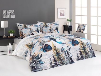 Atraktivní nejen vánoční vzor v hřejivých tónech lískooříškové a nugátově hnědé přináší krepové ložní povlečení Tinsel.