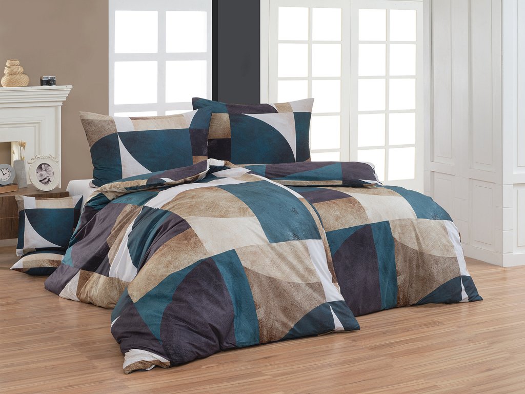 Potřebujete vyladit moderní ložnici k dokonalosti? Vsaďte na ložní povlečení Enzo. Abstraktní geometrický vzor kombinuje atraktivní odstíny zelenomodré, kávově hnědé a krémové. Struktura potisku nese typické prvky umělecké malby.Povlak na přikrývku je z obou stran stejný, povlak na polštář zachycuje z každé strany jinou část geometrického vzoru. Povlečení je opatřeno komfortním zipovým uzávěrem.