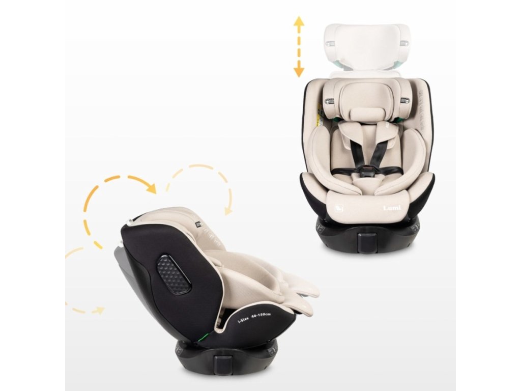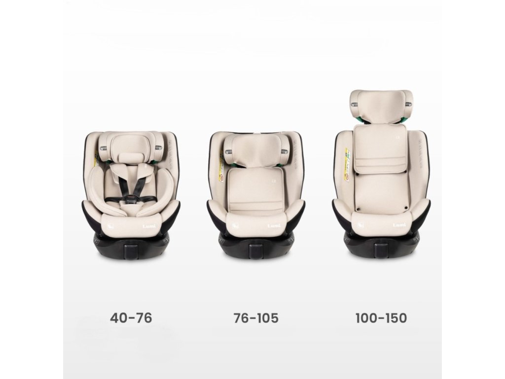 Autosedačka Lumi i-Size 40–150 cm, Isofix, 360°, růstová, od 0m+ do 12 let - béžová