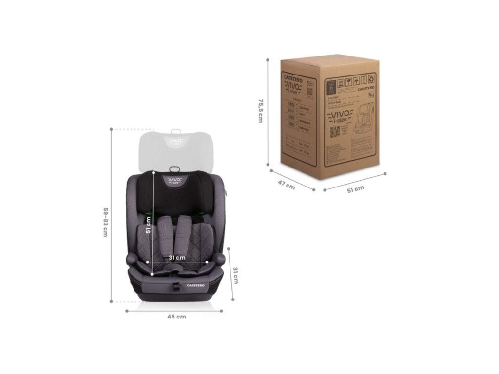 Multifunkční autosedačka Vivo i-Size pro děti od 76 do 150 cm. Autosedačka Vivo i-Size je perfektní volbou pro rodiče, kteří hledají bezpečnost, pohodlí a dlouhou životnost. Tento model je navržen pro děti s výškou od 76 do 150 cm, roste společně s dítětem a nabízí maximální ochranu a komfort během každé jízdy. Všestrannost pro různé věkové kategorie. Autosedačka Vivo 2v1 je ideální pro dvě fáze vývoje dítěte: od 76 do 105 cm pro nejmenší děti a od 105 do 150 cm pro starší. Univerzální konstrukce umožňuje snadnou přeměnu z autosedačky pro novorozence na pohodlné sedadlo pro větší děti. Bezpečnost podle přísných norem ECE R129/03 (i-Size). Tato autosedačka splňuje nejnovější bezpečnostní normy ECE R129/03 (i-Size), což zajišťuje vysokou úroveň ochrany během jízdy. Instalace čelem ke směru jízdy pomocí automobilových bezpečnostních pásů zajišťuje snadné upevnění ve většině vozidel, a to i bez potřeby systému Isofix. Pětibodový bezpečnostní pás poskytuje maximální stabilitu a ochranu pro děti v rozmezí výšky 76–105 cm. Přizpůsobení pro rostoucí potřeby dítěte. Součástí autosedačky je redukční vložka, která zajišťuje správnou oporu hlavy a stabilitu pro novorozence. Opěrka hlavy je nastavitelná v 8 úrovních, což umožňuje snadné přizpůsobení výšce dítěte a zajišťuje optimální pohodlí na každé cestě. Praktické funkce a pohodlí. Speciální vodiče pásů umožňují správné zapínání, zatímco integrované područky zvyšují komfort dítěte, zejména při delších cestách. Rozměry autosedačky jsou 31 x 45 x 83 cm, díky čemuž je kompaktní a snadno se vejde do většiny vozidel. Objevte Vivo i-Size – autosedačku, která kombinuje bezpečnost, funkčnost a pohodlí, a která bude vaším spolehlivým pomocníkem od narození dítěte až po jeho starší roky! Výrobce: IKS 2 Mucha Sp. J.,Rybnicka 9, 43-190 Mikołow. Upozornění: Nenechávejte dítě samo bez dozoru. Obal není hračka, odstraňte ho z dosahu dítěte. Manuál součástí balení.Doplňkové parametry