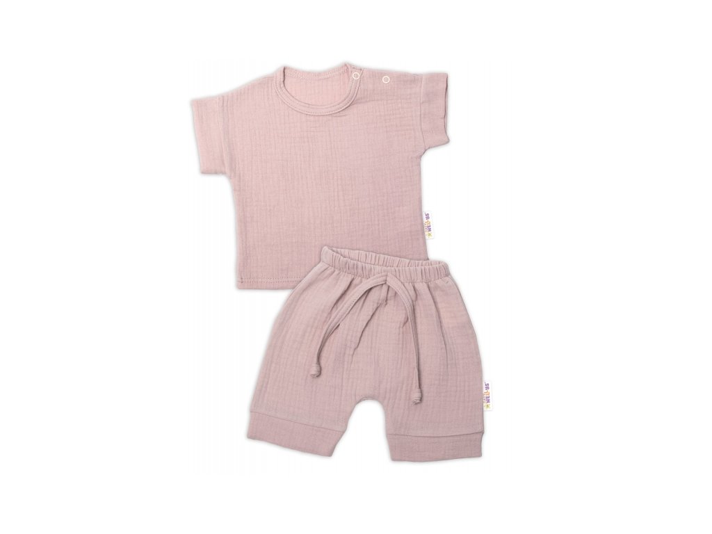 Baby Nellys 2-dílná mušelínová soupravička, tričko + kraťasky BOY, béžová