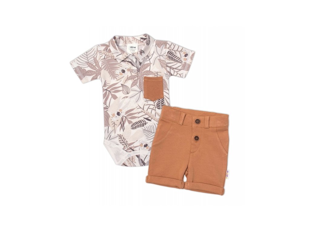 Baby Nellys 2-dílná sada body kr. rukáv, kraťásky, Koala - béžová, hnědá