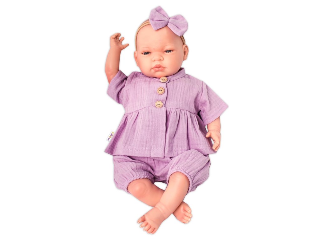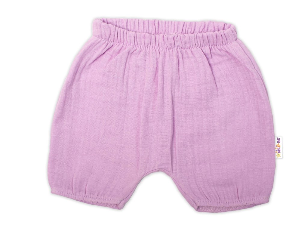 Baby Nellys 3-dílná mušelínová soupravička, tunika/halenka, kraťasky, čelenka, lila