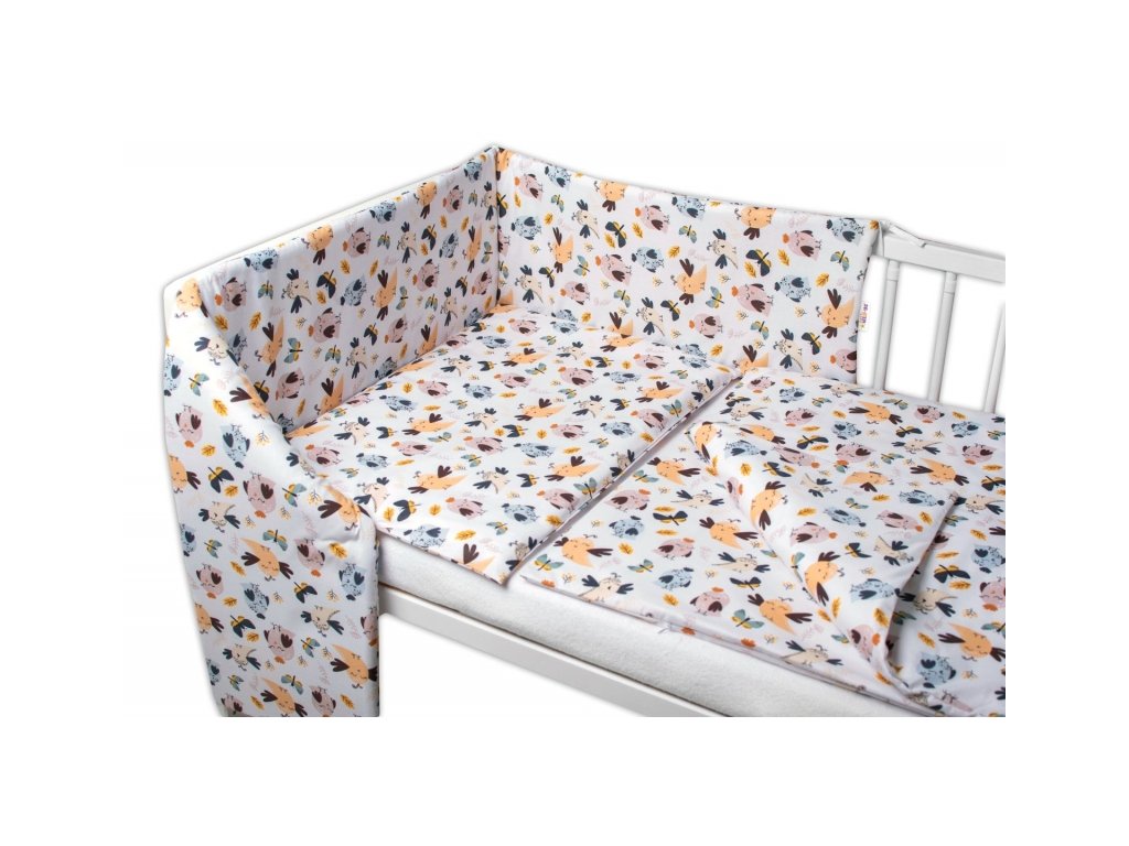 Baby Nellys 3-dílná sada, mantinel s povlečením Ptáčci a Vážky - bílá, 120x90 cm