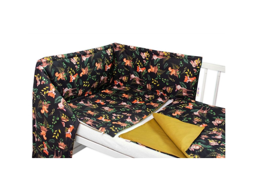 Baby Nellys 3-dílná sada Mantinel s povlečením, Baby Friends, černá/zelená