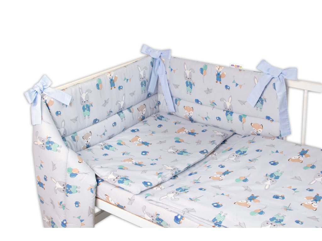 BABY NELLYS 3-dílná sada Mantinel s povlečením, Liška a zajíc, modré