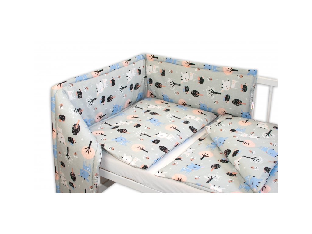 Baby Nellys 3-dílná sada Mantinel s povlečením - Srnečci, šedá