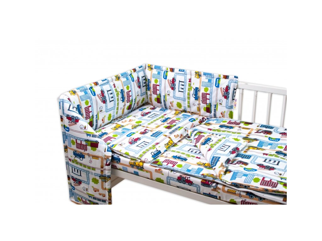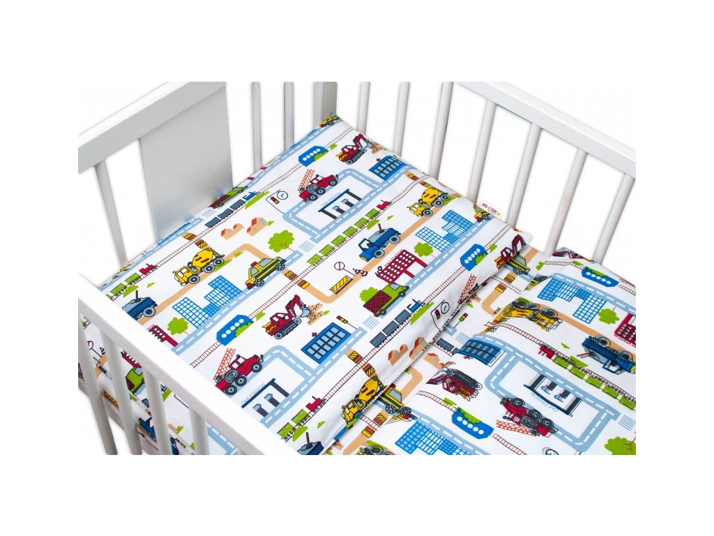 Baby Nellys 3-dílná sada Mantinel s povlečením - Stavební stroje, bílá