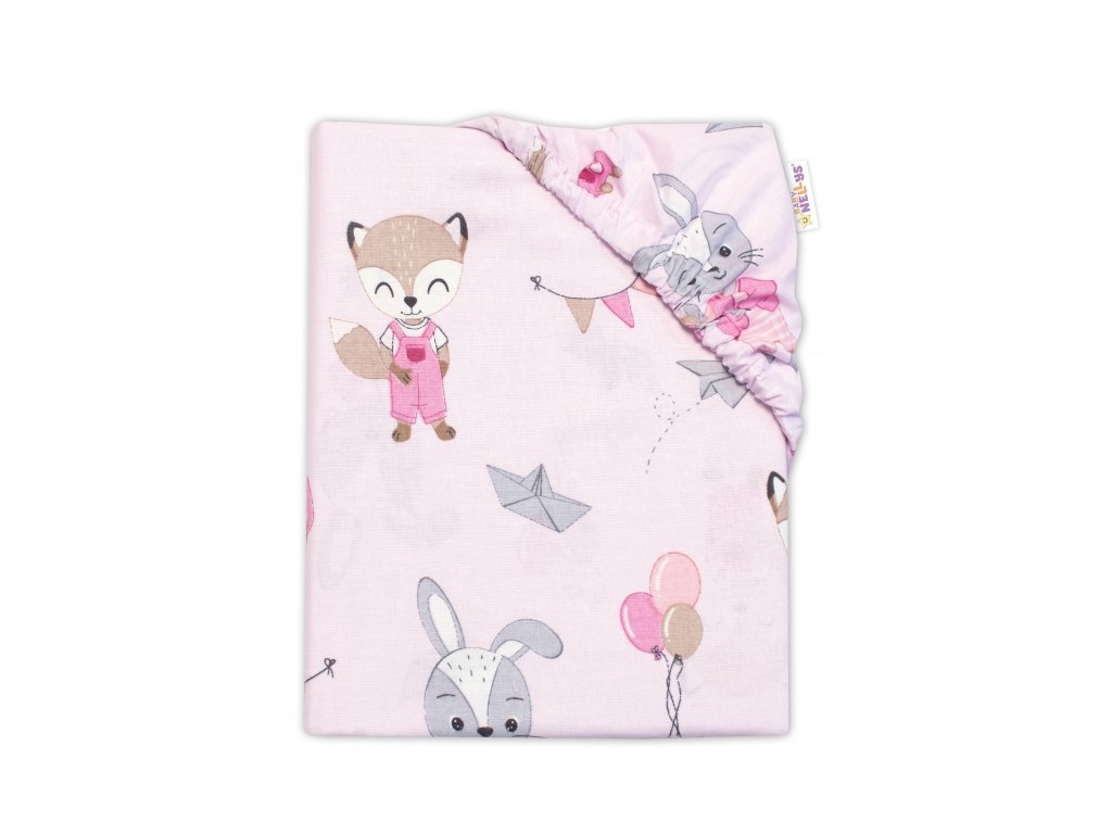 Baby Nellys 6-ti dílná výhod. sada s dárkem pro miminko, 120x90 Liška a zajíc, růžová