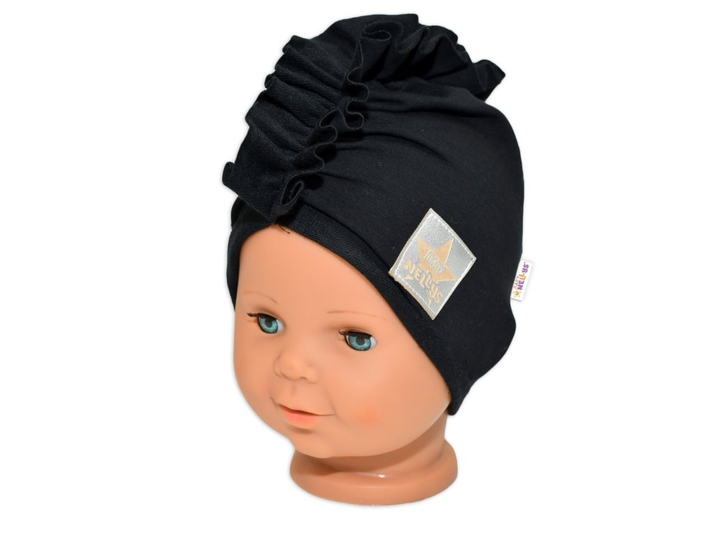 Baby Nellys Jarní/podzimní bavlněná čepice - turban, černá, 68/74