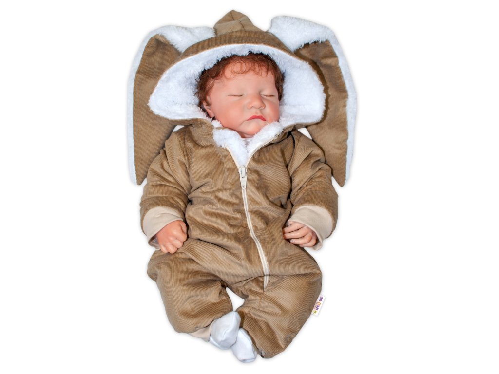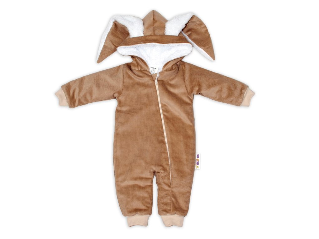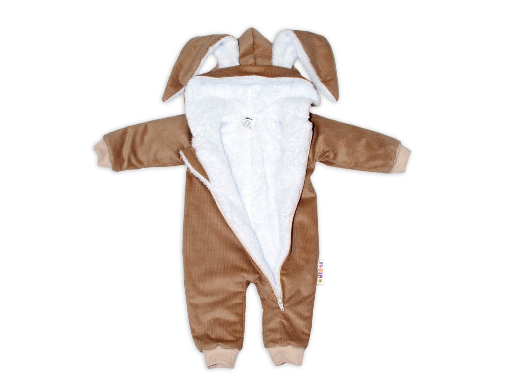 Baby Nellys Manšestrová kombinézka/overálek s kožíškem Cute Bunny - hnědá