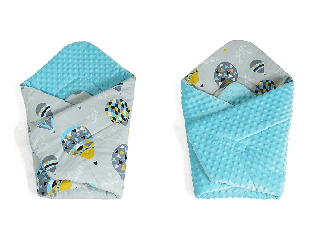 Baby Nellys Oboustranná zavinovačka Minky - Balón, Minky - sv. modrá
