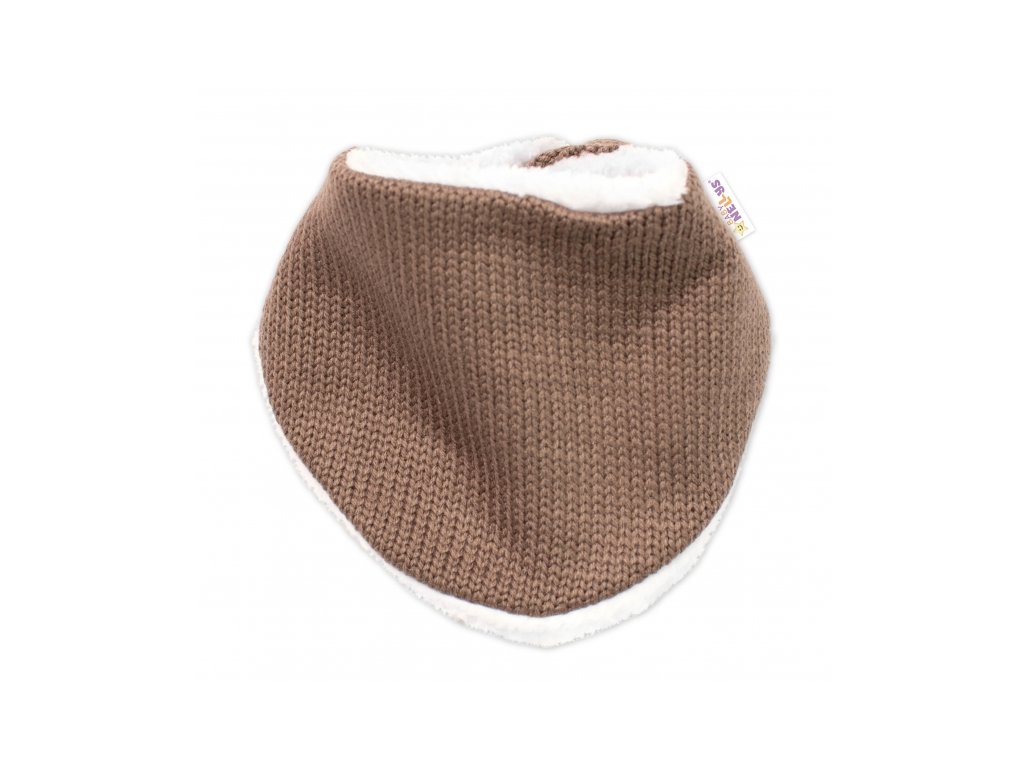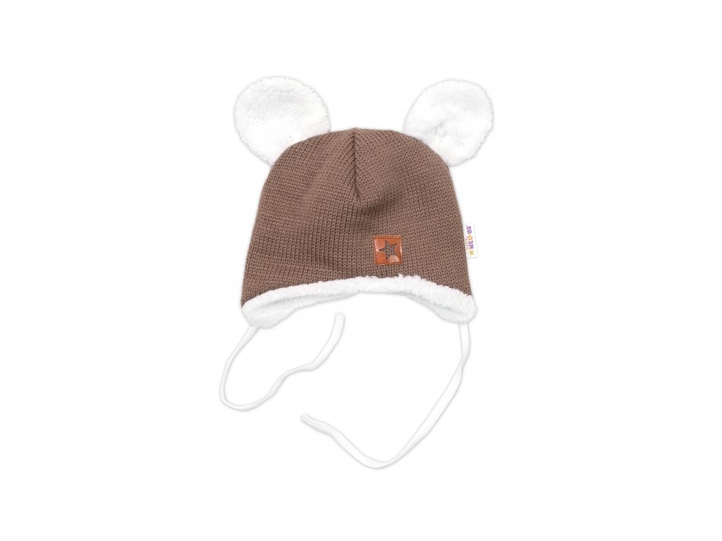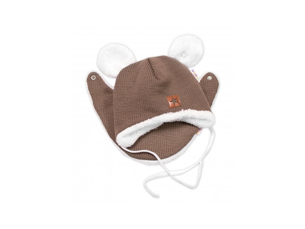 Baby Nellys Pletená zimní čepice s kožíškem a šátkem Star, hnědá