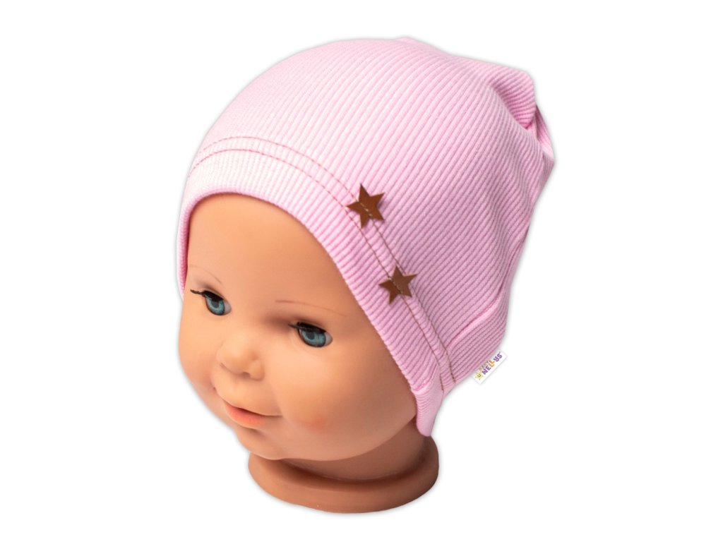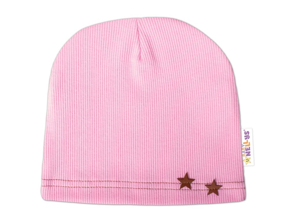 Baby Nellys Žebrovaná čepice Hvězdičky - růžová