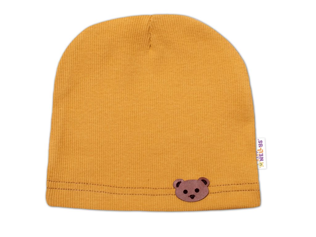 Baby Nellys Žebrovaná čepice Medvídek - hořčicová