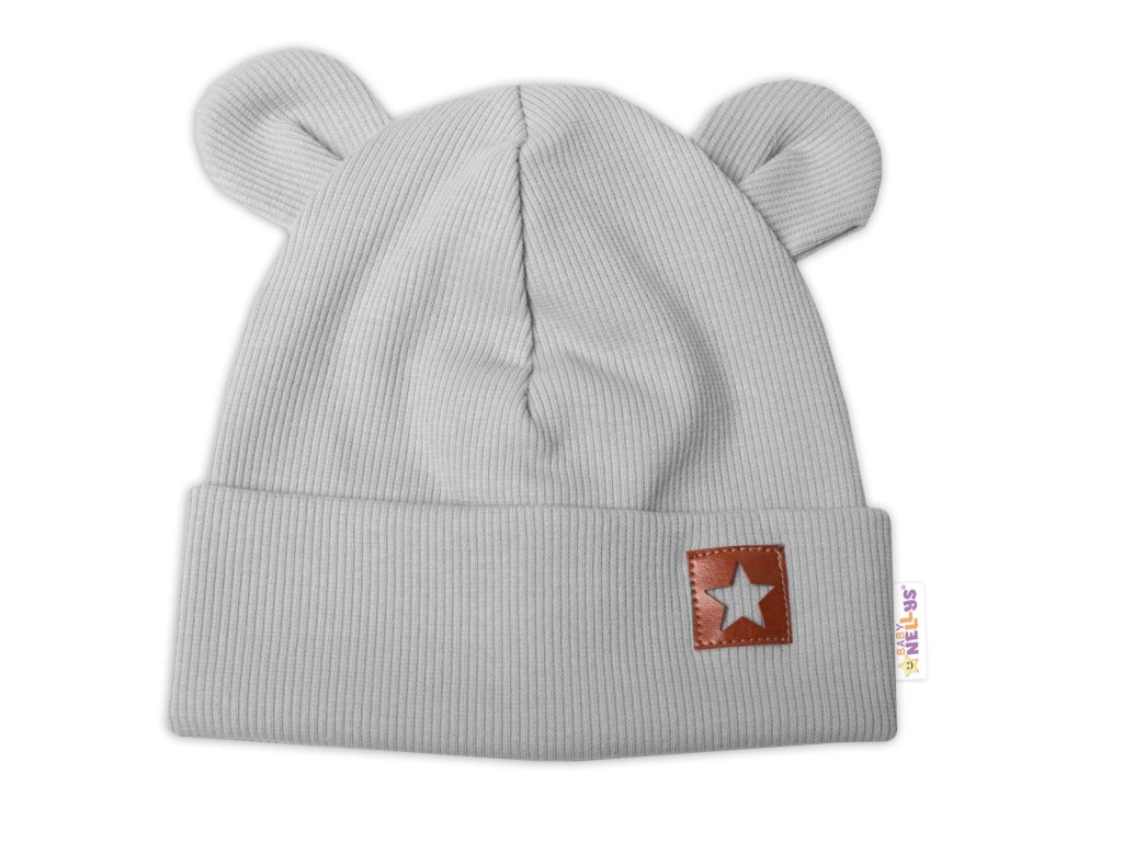 Baby Nellys Žebrovaná dvouvrstvá čepice s oušky TEDDY - šedá