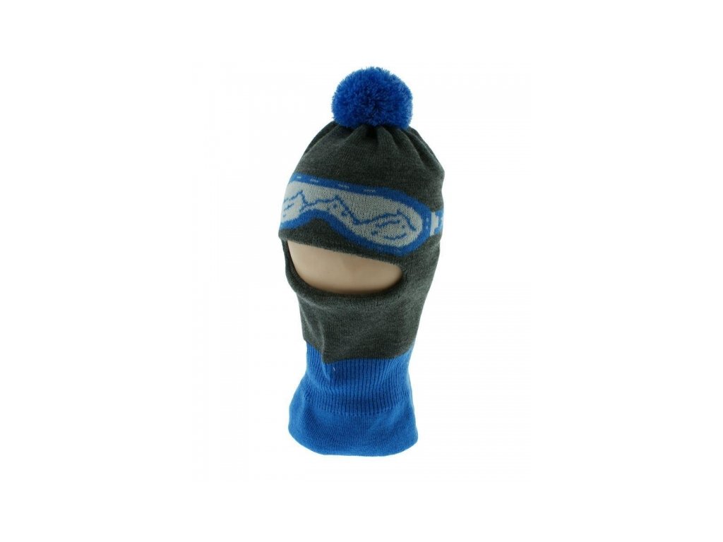 BABY NELLYS Zimní čepička/kukla s bambuli - modrá s brýlemi