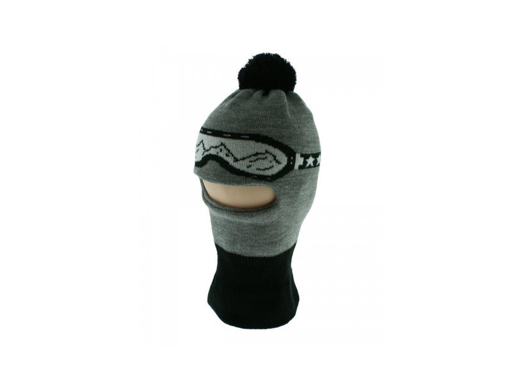 BABY NELLYS Zimní čepička/kukla s bambuli - šedá s brýlemi