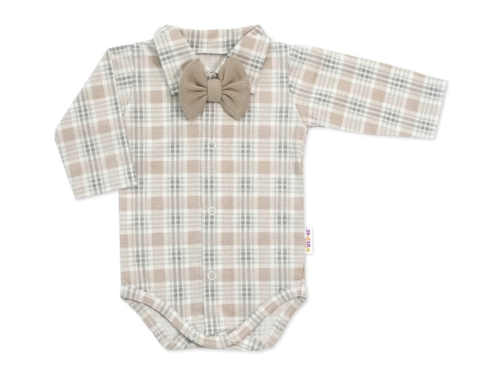 Elegantní sada pro malé Gentlemany. Tato bavlněná souprava je určena pro malé gentlemeny, kteří milují šarm a eleganci. Obsahuje celorozpínací body s dlouhým rukávem a nádherným motýlkem, který není odnímatelný, polodupačky s láclem z žebrovaného bavlněného materiálu a roztomilou čepičku s oušky, která dodává celému outfitu šmrnc. Baby Nellys - česká značka zaručující kvalitu a spokojenosti. S touto soupravou od Baby Nellys dostanete nejenom stylový a pohodlný outfit pro svého malého gentlemana, ale také záruku kvality a spokojenosti. Naše česká značka je synonymem pro kvalitní materiály, precizní zpracování a maximální pohodlí pro vaše dítě. Dopřejte svému malému gentlemanovi ten nejlepší start s touto exkluzivní soupravou od Baby Nellys! Materiál: Bavlna + elastan. Detailní rozměry: Polodupačky s láclem: Vel. 56 - délka 31 cm, pas v klidu - 17 cm x 2, pas po natažení - 21 cm. Vel. 62 - délka 34 cm, pas v klidu - 18 cm x 2, pas po natažení - 23 cm. Vel. 68 - délka 37 cm, pas v klidu - 19 cm x 2, pas po natažení - 24 cm. Body dl. rukáv s motýlkem: Vel. 56 - délka 31 cm, hrudník 2 x 19 cm, rukáv od krku 21 cm. Vel. 62 - délka 25 cm, hrudník 2 x 22 cm, rukáv od krku 22 cm. Vel. 68 - délka 34 cm, hrudník 2 x 20 cm, rukáv od krku 23 cm. Čepička: Vel. 56 - obvod 2 x 18 cm, hloubka - 15 cm. Vel. 62 - obvod 2 x 19 cm, hloubka - 15,5 cm. Vel. 68 - obvod 2 x 20 cm, hloubka - 16 cm. Uvedené rozměry se mohou lišit +- 1-2cm.Doplňkové parametry