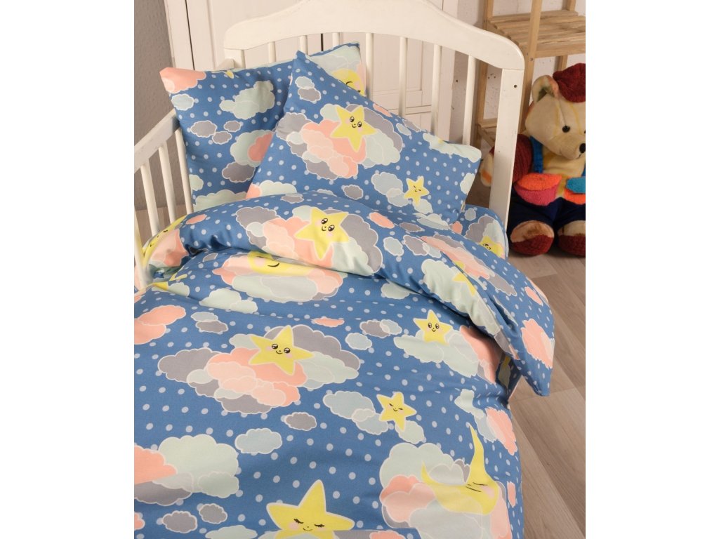 Bavlněné dětské povlečení 140x200, 70x90cm obloha modrá