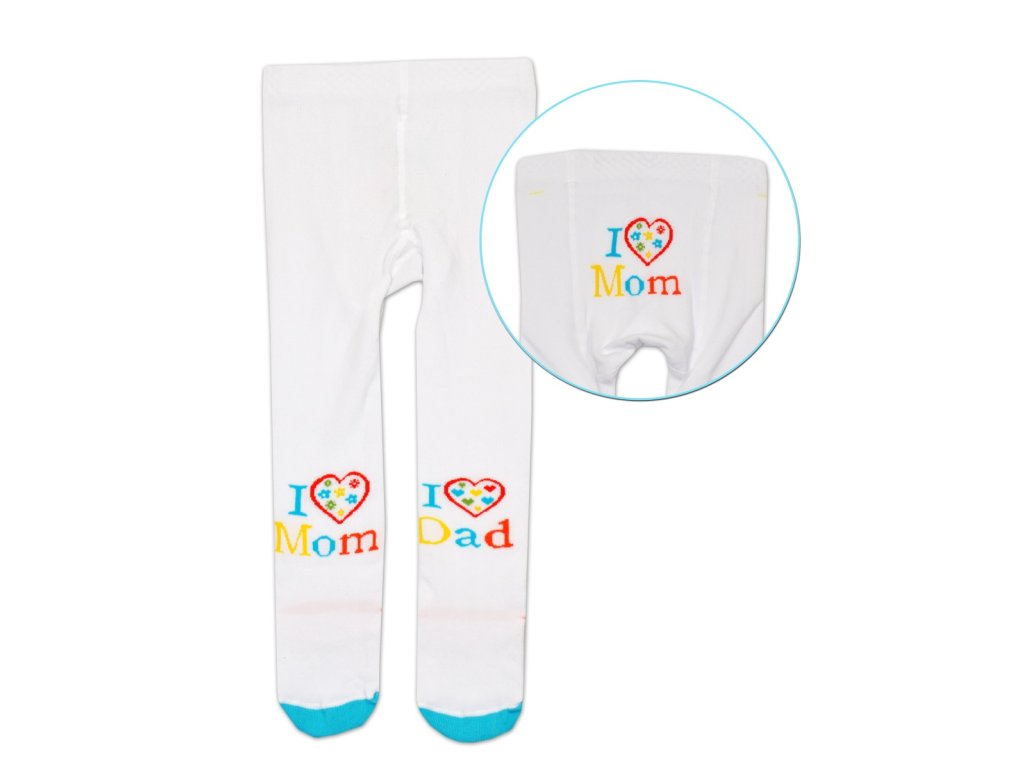 Bavlněné punčocháče Baby Nellys ® - I love Mom, I love Dad - bílé