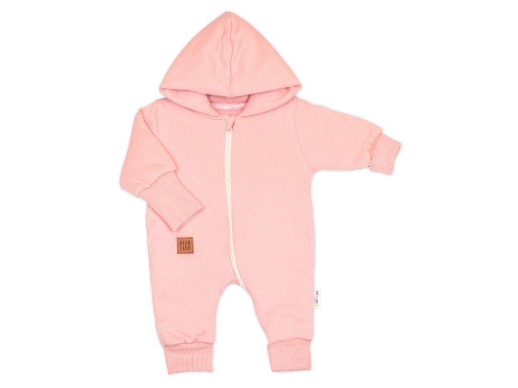 Bavlněný oteplený overálek s kapucí, rukavičky, botky, 3D sada Nature - korálová
