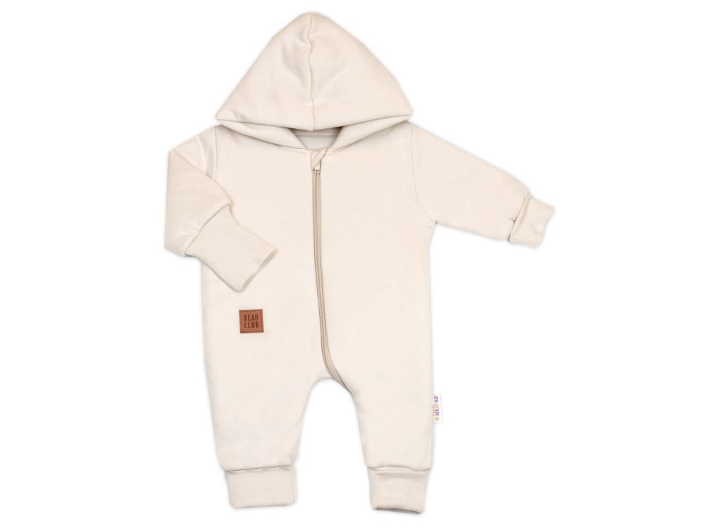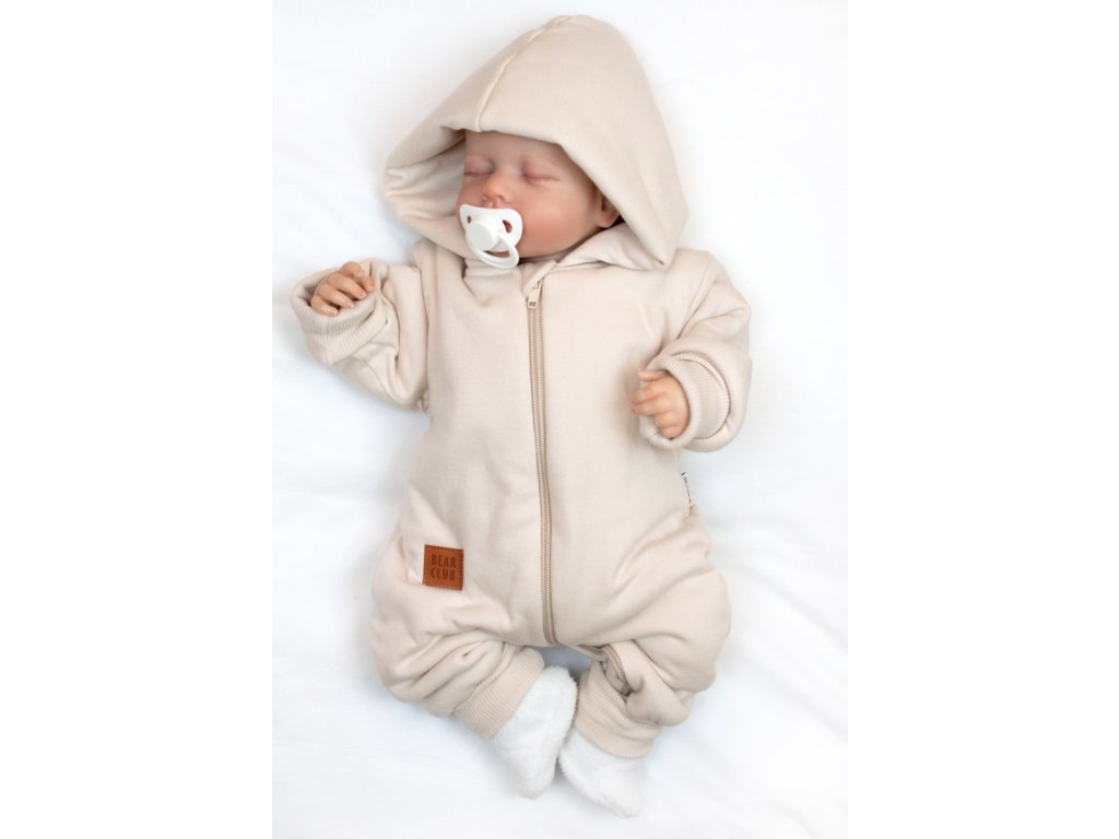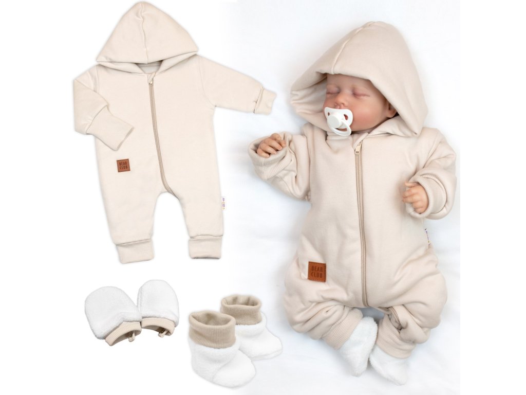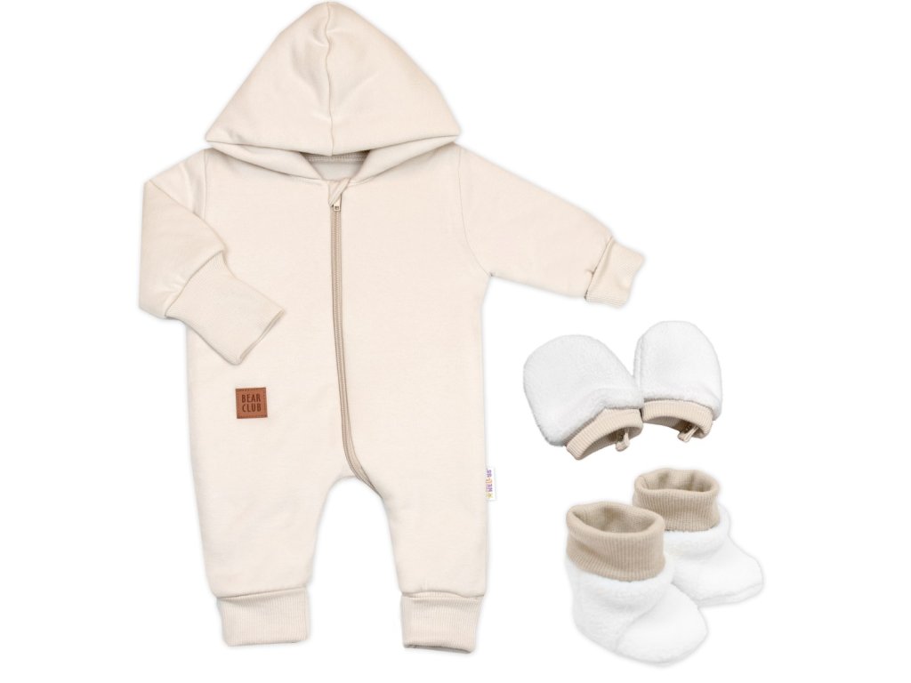 Bavlněný oteplený overálek s kapucí, rukavičky, botky, 3D sada Nature - sv. béžový