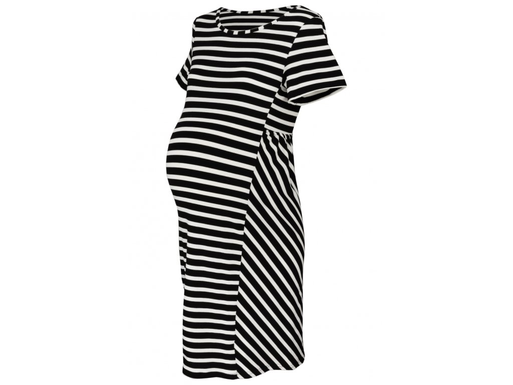 Be MaaMaa Těhotenské proužkované šaty s kr. rukávem - černá/ecru