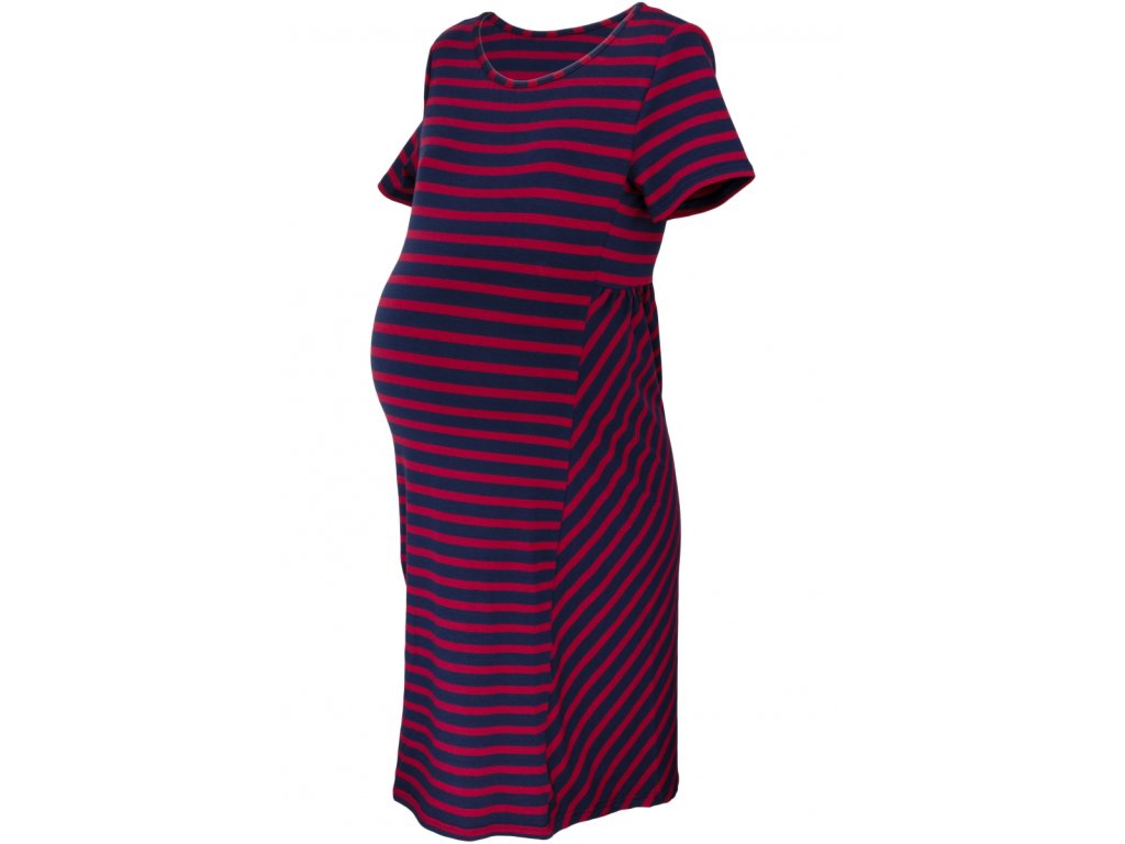 Be MaaMaa Těhotenské proužkované šaty s kr. rukávem - granát/bordo