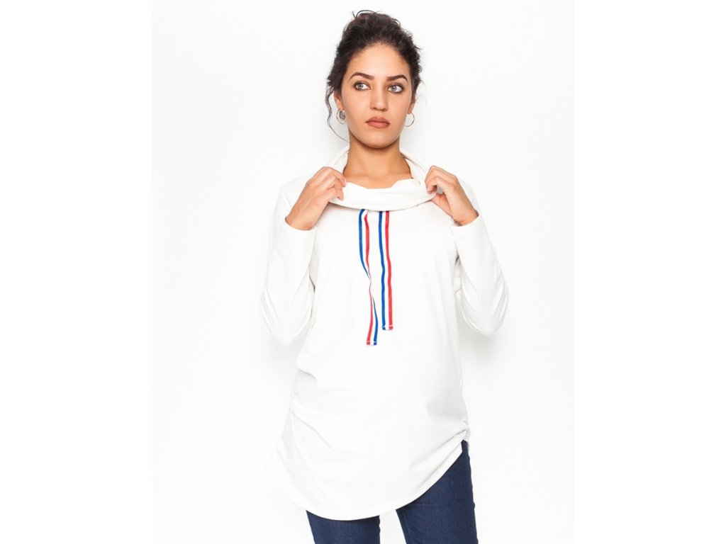 Be MaaMaa Těhotenské triko/mikina se stojáčkem Nova - bílé