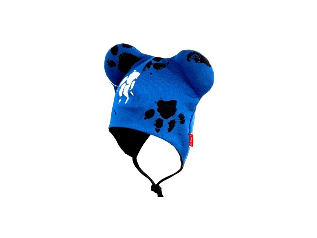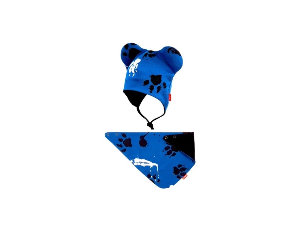 Bexa dvouvrstvá čepice na zavazování s oušky + šátek - Tlapky, granát