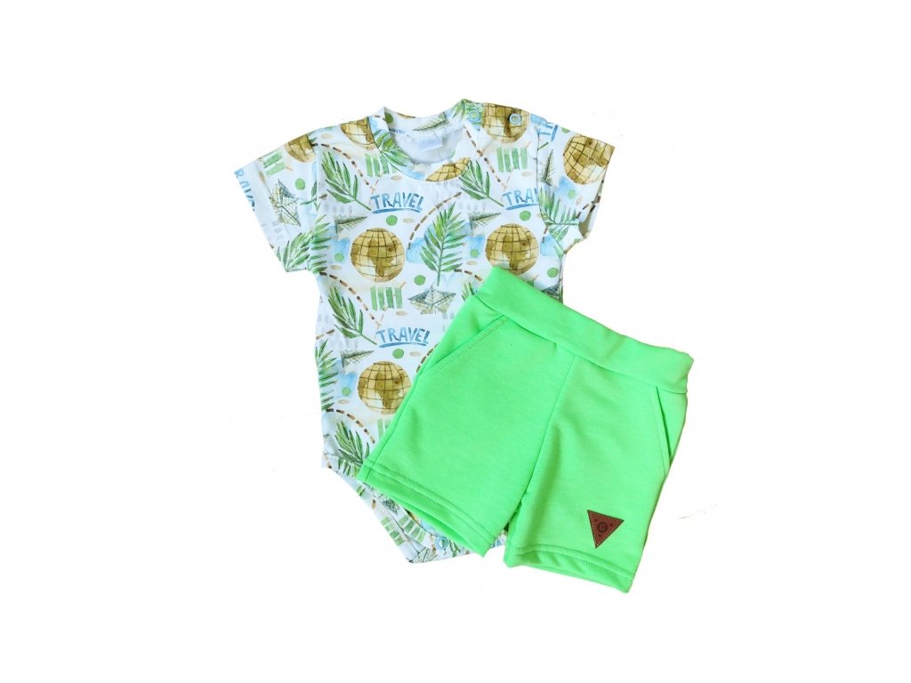 Body kr. rukáv + kraťásky s kapsami 2D sada, Cestovatel, G-baby, zelené