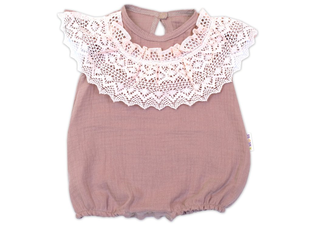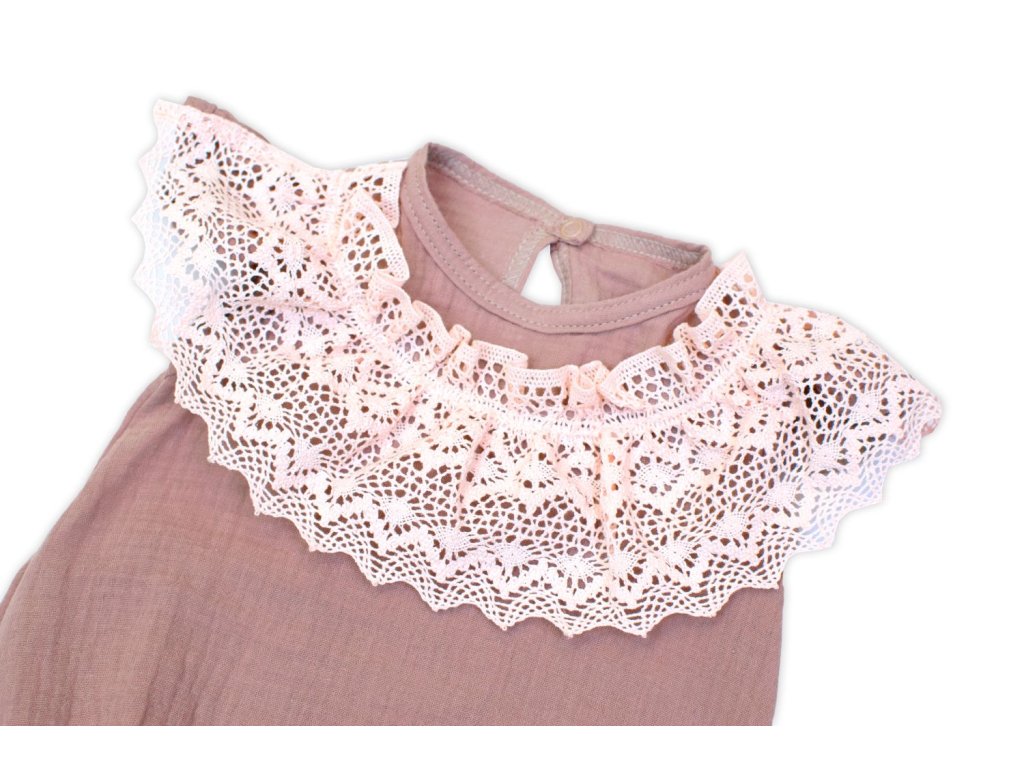 Body s nohavičkami, mušelín s krajkou BOHO - hnědorůžová