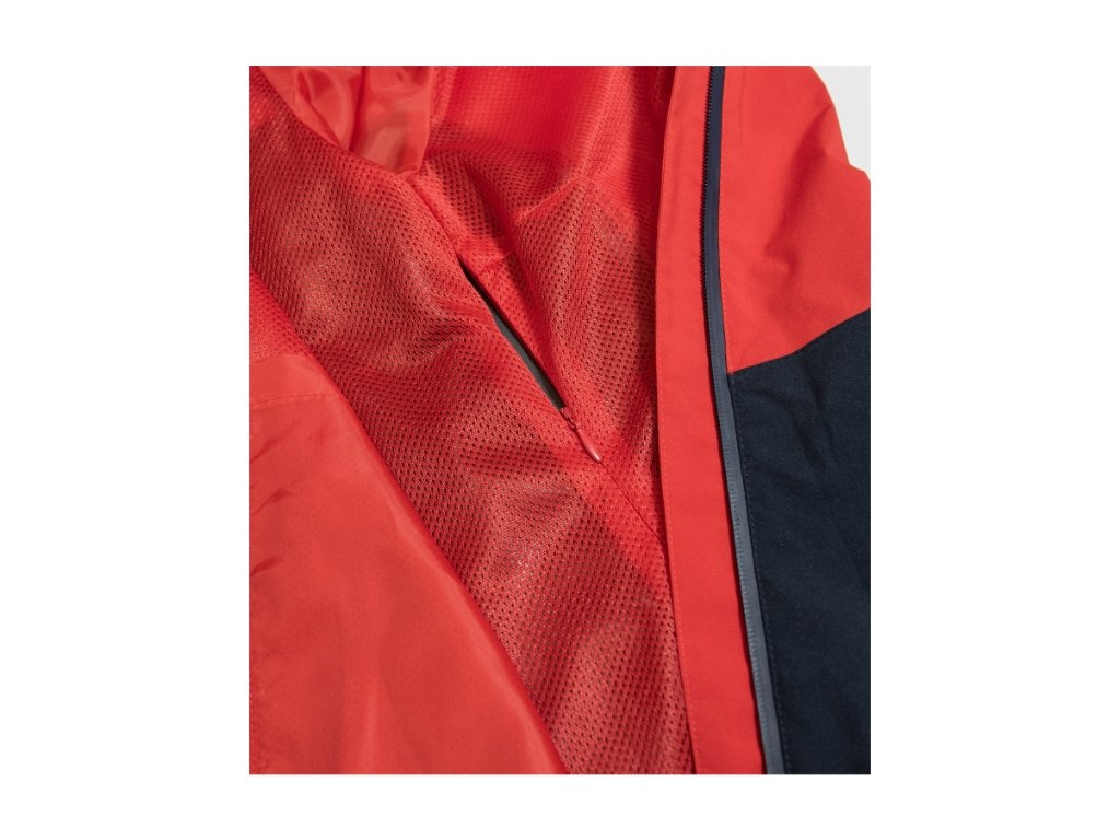 lehký voděodolný materiál s membránou úprava BIONIC FINISH® ECO zabraňující průniku vody rovný střih s bočními díly voděodolný zip zakončený krytkou brady odnímatelná kapuce na stažení šňůrkou lemy rukávů nastavitelné suchým zipem boční kapsy s reverzním spirálovým zipem vnitřní náprsní kapsa na suchý zip podlepené švy vstup pro branding v bočním švu podšívky tvarovaný a mírně prodloužený zadní díl dolní okraj stažený pruženkou v boční části odvětrávání v zadní části reflexní prvkyPlátnová vazba, 100 % polyester, TPU membrána, BIONIC FINISH® ECO hydrofobní úprava podšívka: síťovina, 100 % polyester voděodolnost 5 000 mm, prodyšnost 3 000 g/m²/24 hod