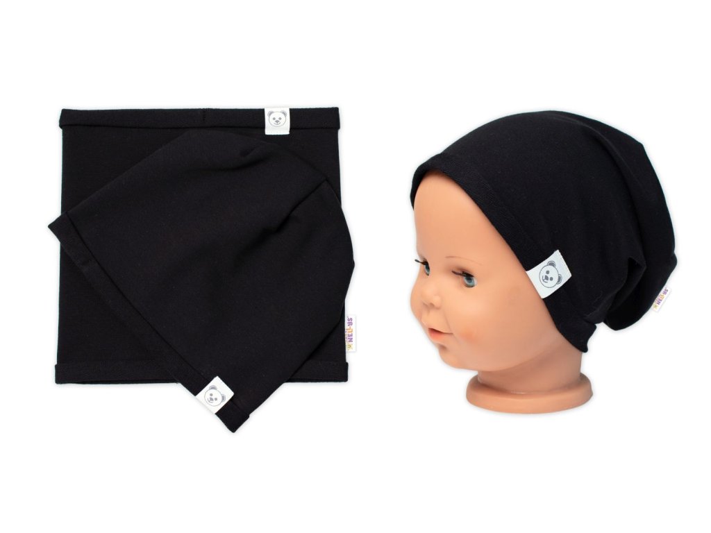 Čepice s nákrčníkem bavlna, Little Bear, Baby Nellys, černá