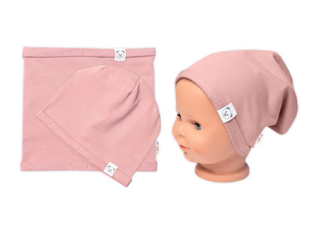 Čepice s nákrčníkem bavlna, Little Bear, Baby Nellys, pudrová