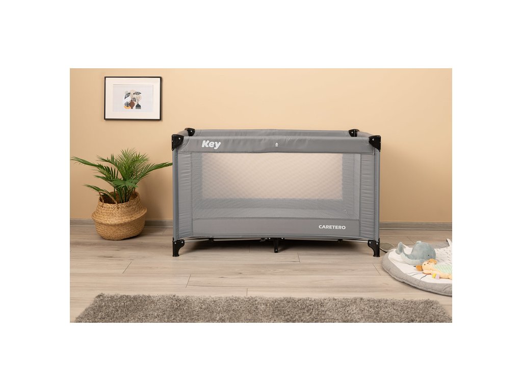 Cestovní postýlka KEY. Cestovní postýlka KEY je vytvořená pro usnadnění péče o miminka. Její největší předností je snížená bočnice, která přemění postel na přistýlku a poskytuje pohodlnější přístup k dítěti. Praktický skládací mechanismus umožňuje skládání či rozkládání v krátkém okamžiku. Postýlka splňuje normu EN 716:2017-07. Nejdůležitější vlastnosti: - cestovní postýlka vhodná pro děti do hmotnosti 15 kg, - součástí balení je i skládací cestovní matrace. Balení obsahuje pohodlnou tašku na přenášení složené postele. Postýlka odpovídá evropské normě EN 716:2017-07. Technické parametry: Věkové rozmezí: od 1 měsíce do 4 let. Vnější rozměry: 126x65x74 cm. Vnitřní rozměry: 120x60x25 (se zavěšením). 120x60x65 (bez zavěšení) Rozměry po složení: 21x21x74 cm Hmotnost: 8,8 kg. Rozměry balení: 21x21x74 cm.Doplňkové parametry
