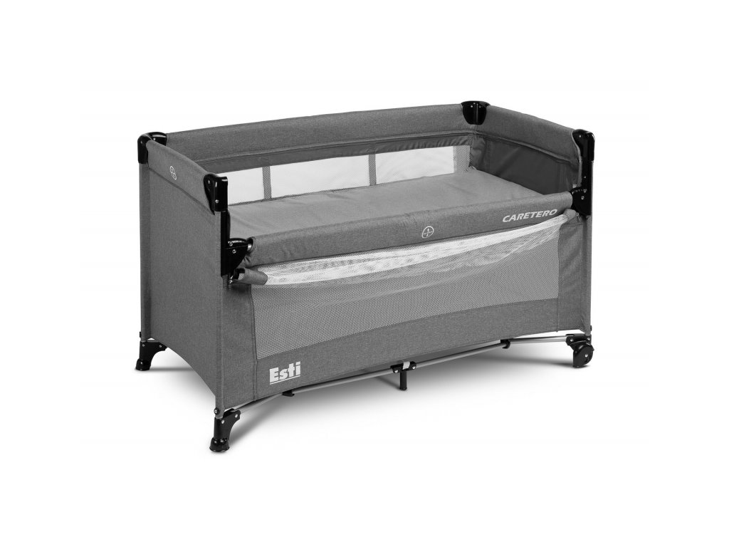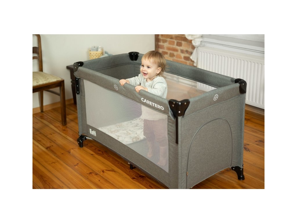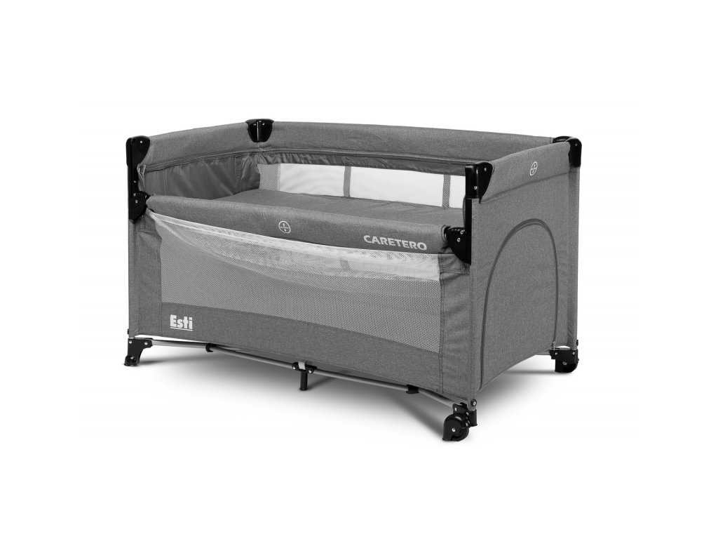 Cestovní postýlka se stahovací bočnicí Esti Caretero - šedá.Cestovní postýlka Esti je vytvořená pro usnadnění péče o miminka.