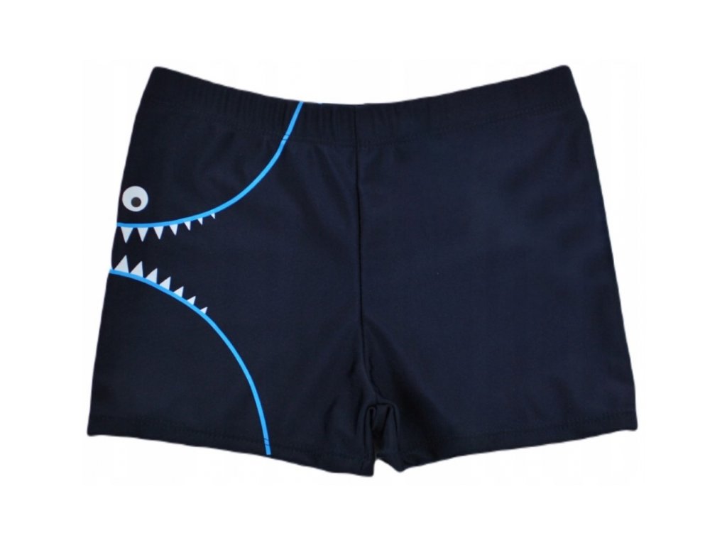 Chlapecké plavky.Chlapecké námořnické modré plavky s potiskem žraloka na boku. Díky stahovacímu pasu a regulaci pomocí šňůrky se dají individuálně přizpůsobit postavě. Uvnitř šortek je vpředu všit další jemný materiál, který zabraňuje oděrkám kůže.