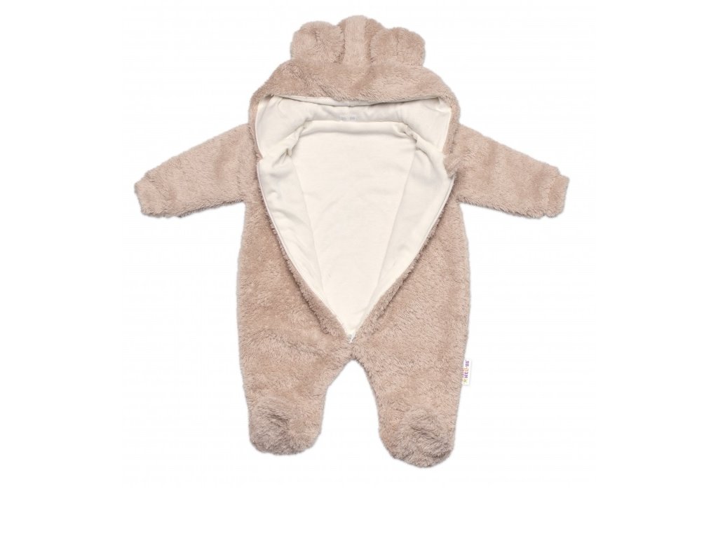 Chlupáčkový overal Luna s kapucí + rukavičky, Baby Nellys, Medvídek, béžový