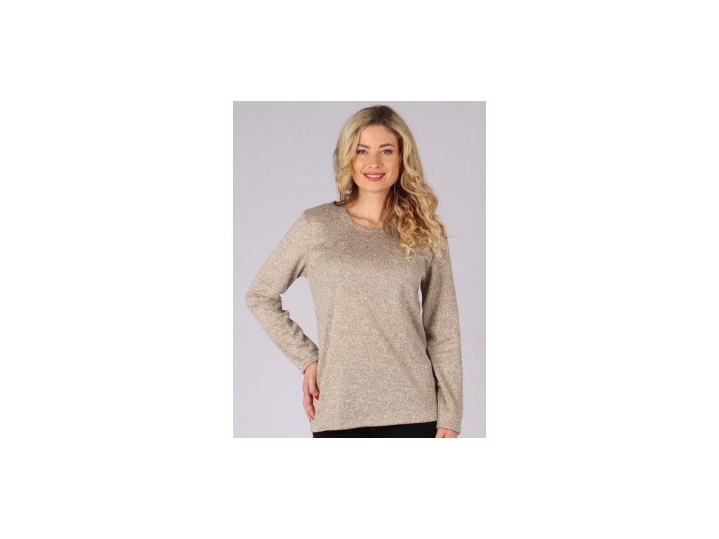 Dámská halenka pro chladnější dny z měkkého hřejivého úpletu. Má klasický rovný střih, dlouhý rukáv a kulatý výstřih.