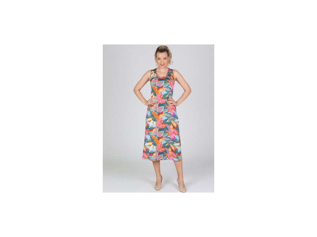 Vneste do svého šatníku šmrnc originality! Dámské dlouhé šaty BORGO vás zaujmou na první pohled svým barevným originálním vzorem, který dodává outfitu jedinečný styl. Díky kulatému výstřihu a střihu bez rukávů působí šaty svěže a vzdušně – ideální pro letní dny nebo společenské příležitosti.