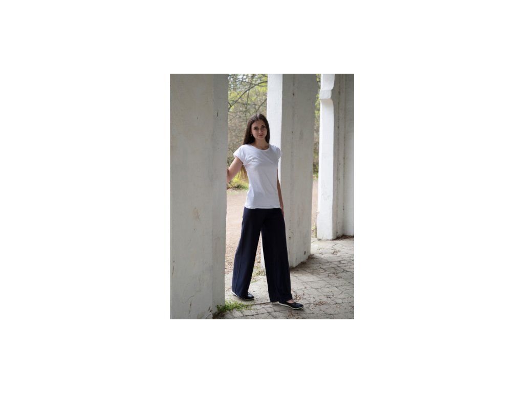 Tričko má kulatý výstřih a spadlý rukáv typu kimono, který dodává outfitu ležérní, ale zároveň ženský vzhled.