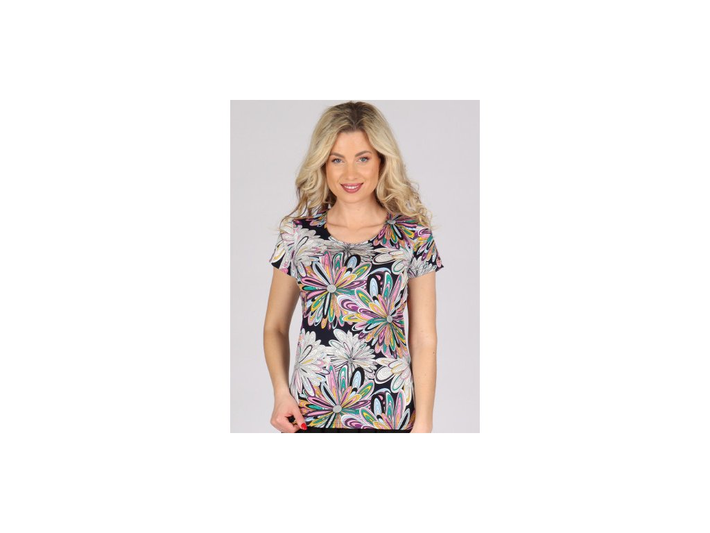 Klasické tričko RUTH s krátkým rukávem vás svým vzorem okouzlí. Je vyrobené ze vzdušné viskozy, proto se příjemně nosí a perfektně sedí. Toto tričko si zamilujete.