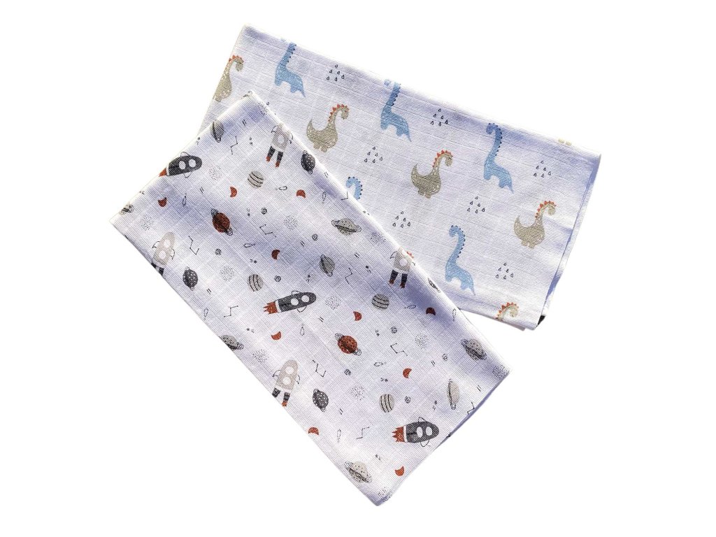 Dárkové balení pleny Vesmír a Brontosaurus 70x70 cm (balení 2 ks)