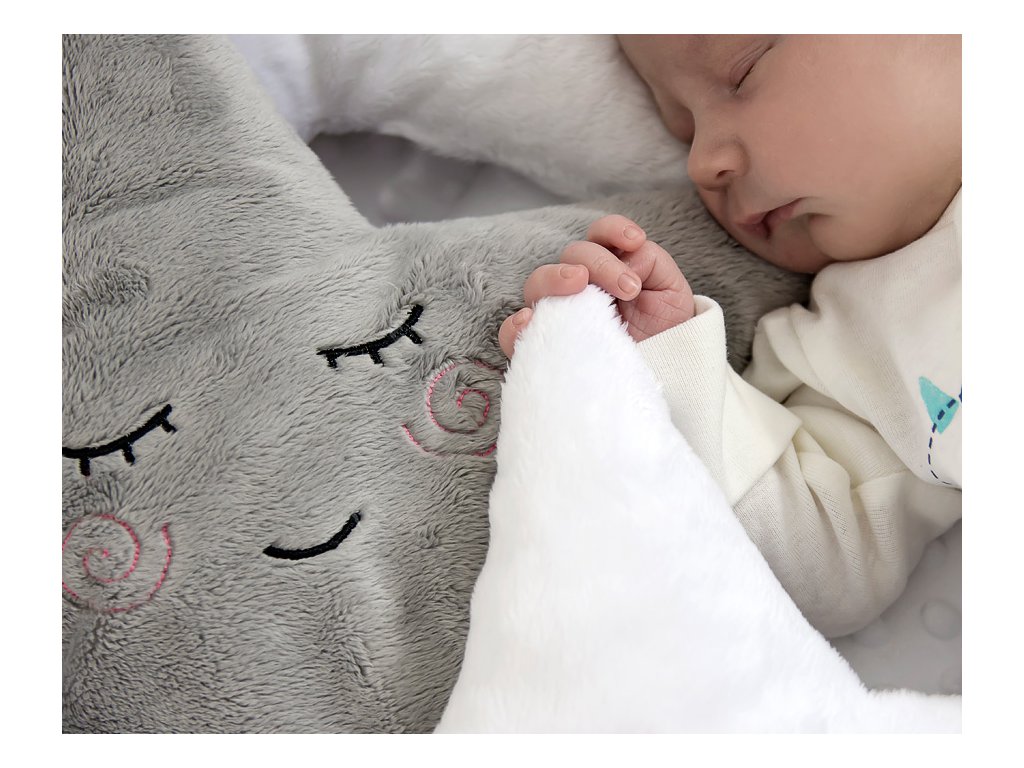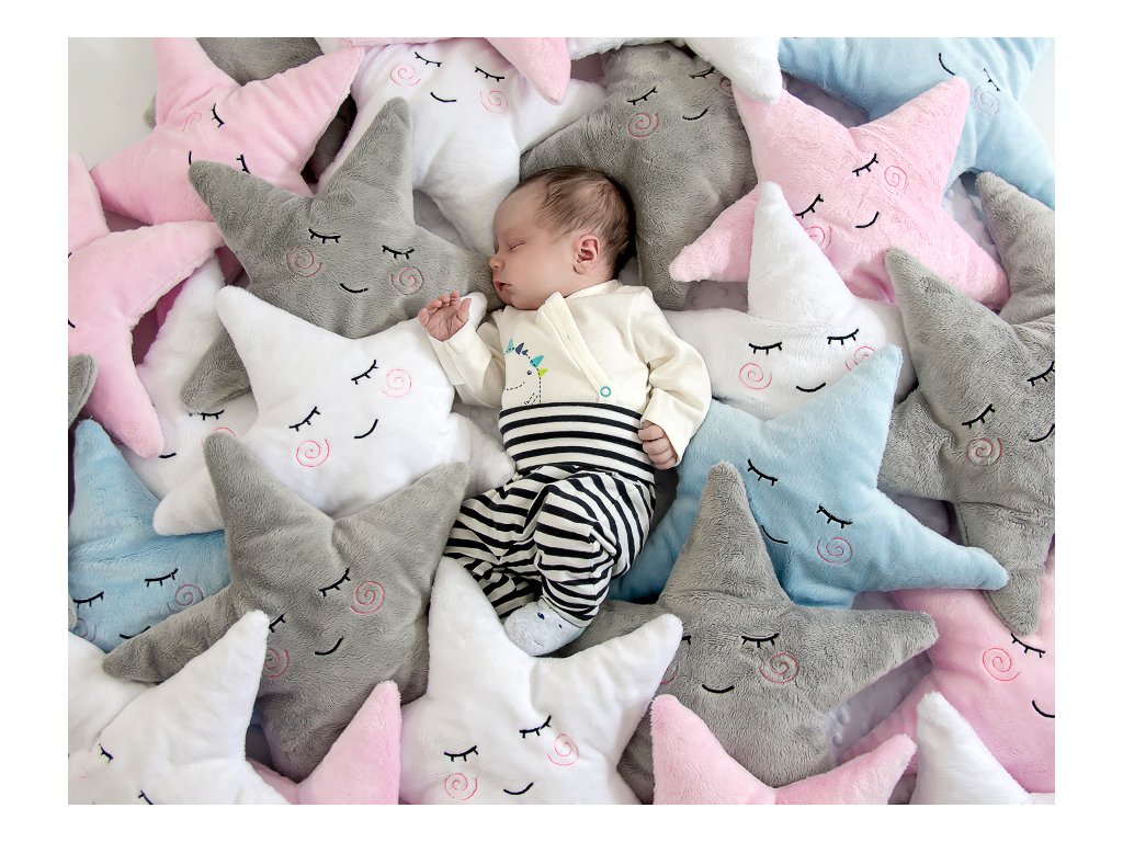 Dekorační polštářek s chrastítkem Hvězdička. Materiál potah: 100% polyester. Materiál vnitřek: duté vlákno. Rozměr dečky: cca 40 cm x 40 cm.Doplňkové parametry