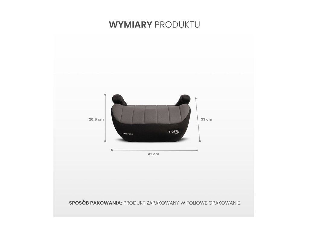 Dětská autosedačka pro děti o výšce 125–150 cm – Tiger i-Size. Bezpečnost a pohodlí pro starší děti. Dětská autosedačka Tiger i-Size typu booster je ergonomicky navržené řešení pro starší děti, které dosáhly požadované výšky a hmotnosti. Tento model umožňuje bezpečný přechod z tradiční autosedačky na podsedák, přičemž zajišťuje maximální bezpečnost a pohodlí během cestování. Bezpečnost v souladu s normou i-Size. Autosedačka Tiger, certifikovaná podle evropské normy i-Size, je ideální volbou pro rodiče, kteří preferují nejvyšší standardy ochrany. Díky použití podsedáku je automobilový bezpečnostní pás přesně umístěn na těle dítěte, což maximalizuje bezpečnost. Sedačku lze snadno nainstalovat pomocí 3bodového bezpečnostního pásu vozidla, a to i v autech bez systému ISOFIX. Funkčnost a komfort pro každodenní použití. Model Tiger i-Size nabízí prostorné sedadlo a ergonomicky tvarované područky, které dětem zajistí pohodlí i při delších cestách. Lehká konstrukce sedačky umožňuje snadné přenášení mezi různými vozidly a jednoduchou instalaci nebo demontáž. Navíc je sedačka opatřena odnímatelným potahem, který lze prát v pračce, což rodičům usnadňuje její údržbu. Technické specifikace. - Vnější rozměry: 33 × 42 × 20,5 cm. - Směr instalace: Pouze po směru jízdy. - Možnosti nastavení: Bez regulace. - Bezpečnostní pásy: Nepřítomny, použití automobilového pásu. - Hmotnost s obalem: 1 kg. - Výškový rozsah dítěte: 125–150 cm. Proč vybrat dětskou autosedačku Tiger i-Size? Tiger i-Size je kombinací bezpečnosti, pohodlí a praktičnosti, kterou ocení každý rodič i dítě. Díky kompaktním rozměrům a snadnému použití je ideální volbou pro každodenní cestování i delší výlety. Zvolte bezpečnost a pohodlí – zvolte Tiger i-Size! Výrobce: IKS 2 Mucha Sp. J., Rybnicka 9, 43-190 Mikołów, IČ 270144480. Upozornění: Nenechávejte dítě bez dozoru. Obal není je hračka, odstraňte ji z dosahu.Doplňkové parametry