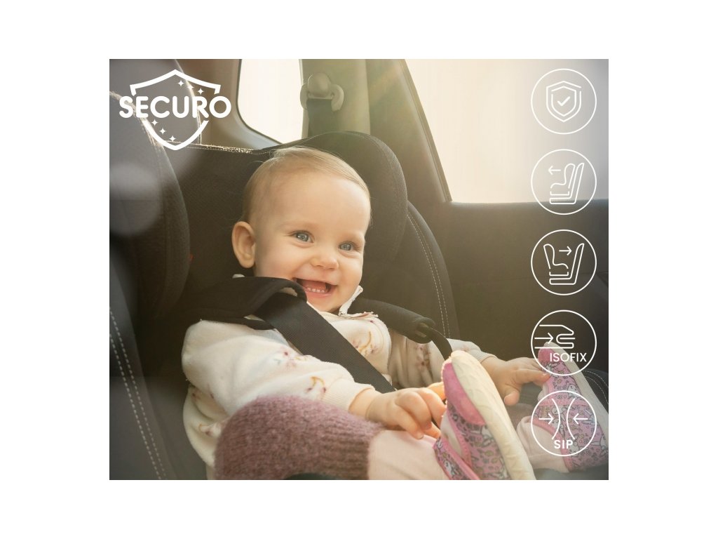 Autosedačka Securo – Bezpečnost a pohodlí od narození až do 12 let.Autosedačka Securo je navržena pro děti o výšce 40–150 cm a splňuje přísnou normu i-Size (ECE R129),